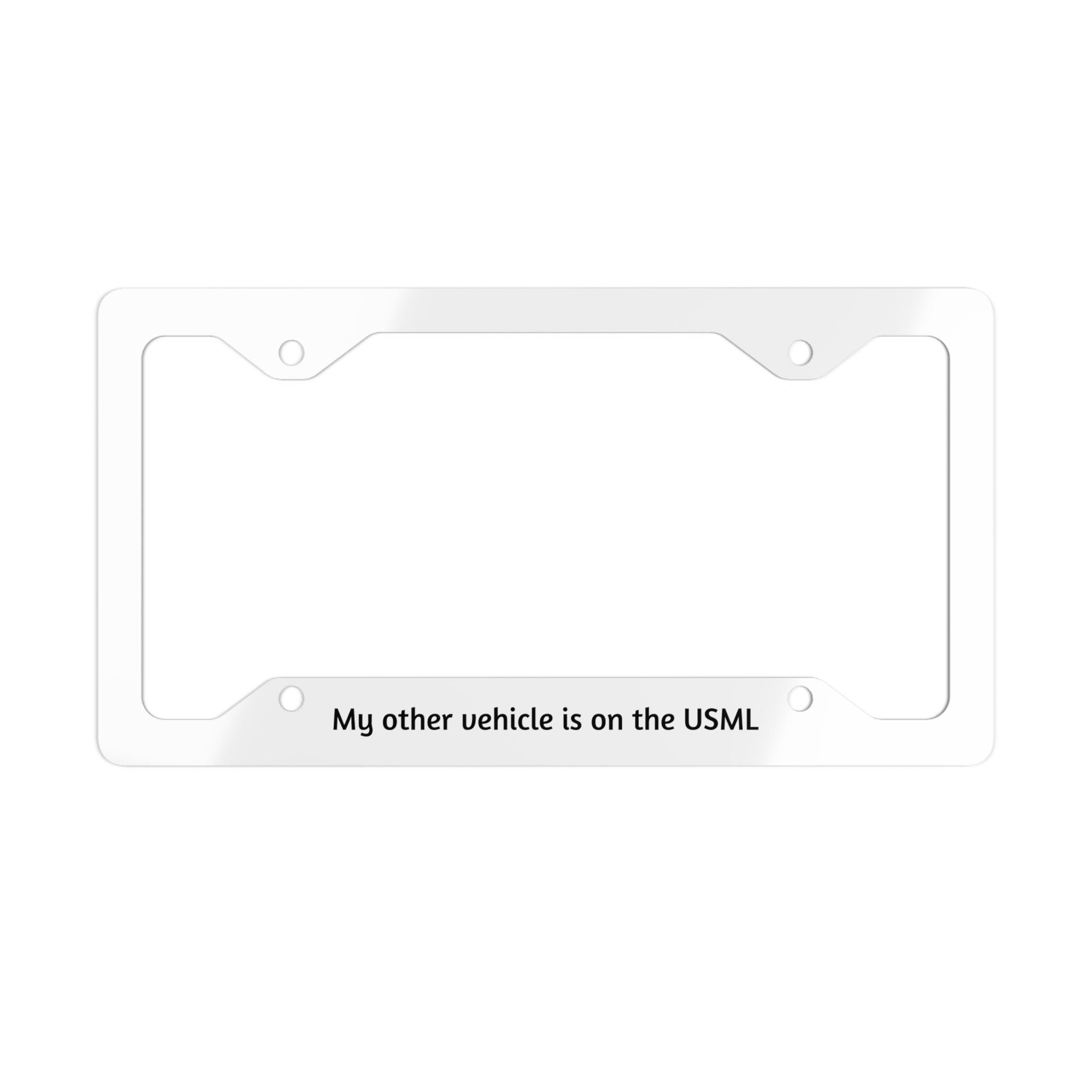 A slim, glossy metal license plate frame that adds a subtle wink to your bumper without hiding important registration details. The unique cutaway shape reveals the state plate’s essential numbers and stickers while the bright, full-color front panel lets a short message or design stand out. Lightweight white aluminum with a silver backing and pre-drilled holes keeps installation simple (screws not included). It wears well on daily drives and adds a little personality to road trips, car shows, or every commute.—just check local regulations first to ensure the shape and size comply.