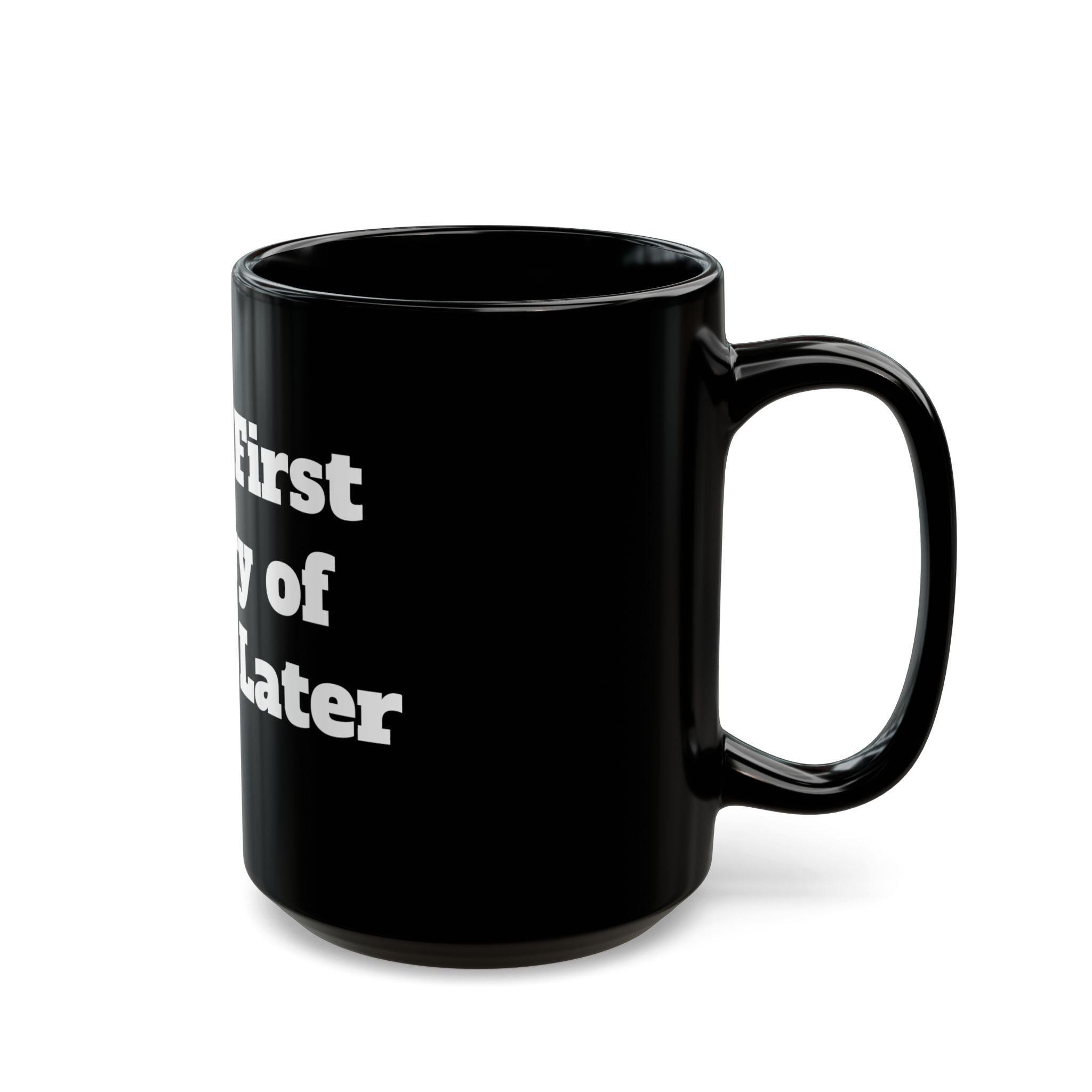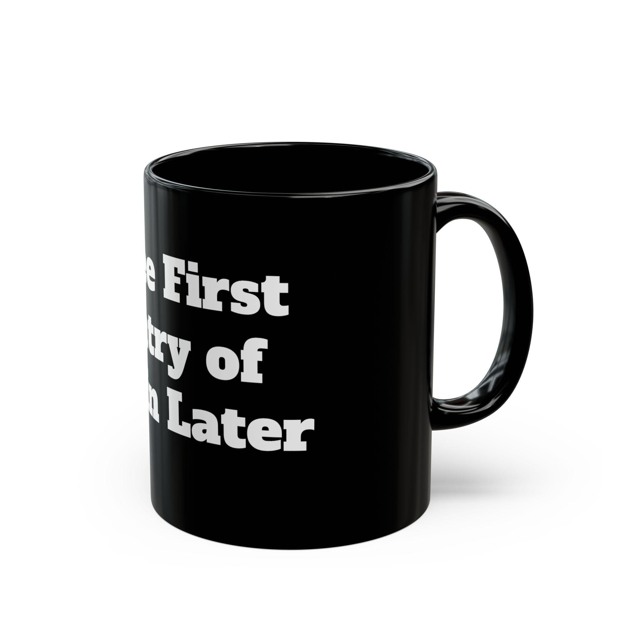 A glossy black ceramic mug with bold white typography that reads like a quick, witty manifesto. The heavy, high-contrast lettering wraps around the mug’s face, giving it attitude and presence on a cluttered desk or a quiet kitchen counter. It feels like a private inside joke between colleagues during a morning stand-up, or a deliberate statement on the home office shelf. The weight and shine of the black glaze make the white print pop, and the comfortable C-shaped handle keeps your grip steady through long brews. Choose 11oz for a compact, focused cup or 15oz when you need that extra pour to power through late-night edits or long planning sessions.