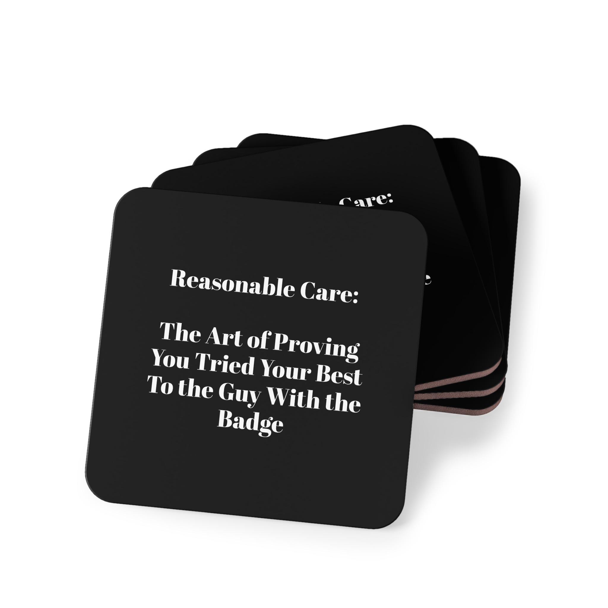 A set of sleek, glossy coasters that bring quiet confidence to any desk or coffee table. The deep black surface showcases bold white typography with a crisp finish, while the cork backing protects surfaces and keeps each piece firmly in place. Compact and sturdy, these coasters sit easily under your mug during long work sessions or evening brews, adding a touch of wit and calm to routine moments. They work as singular accent pieces or gathered in a four-piece set for consistent style across a living room or office.
