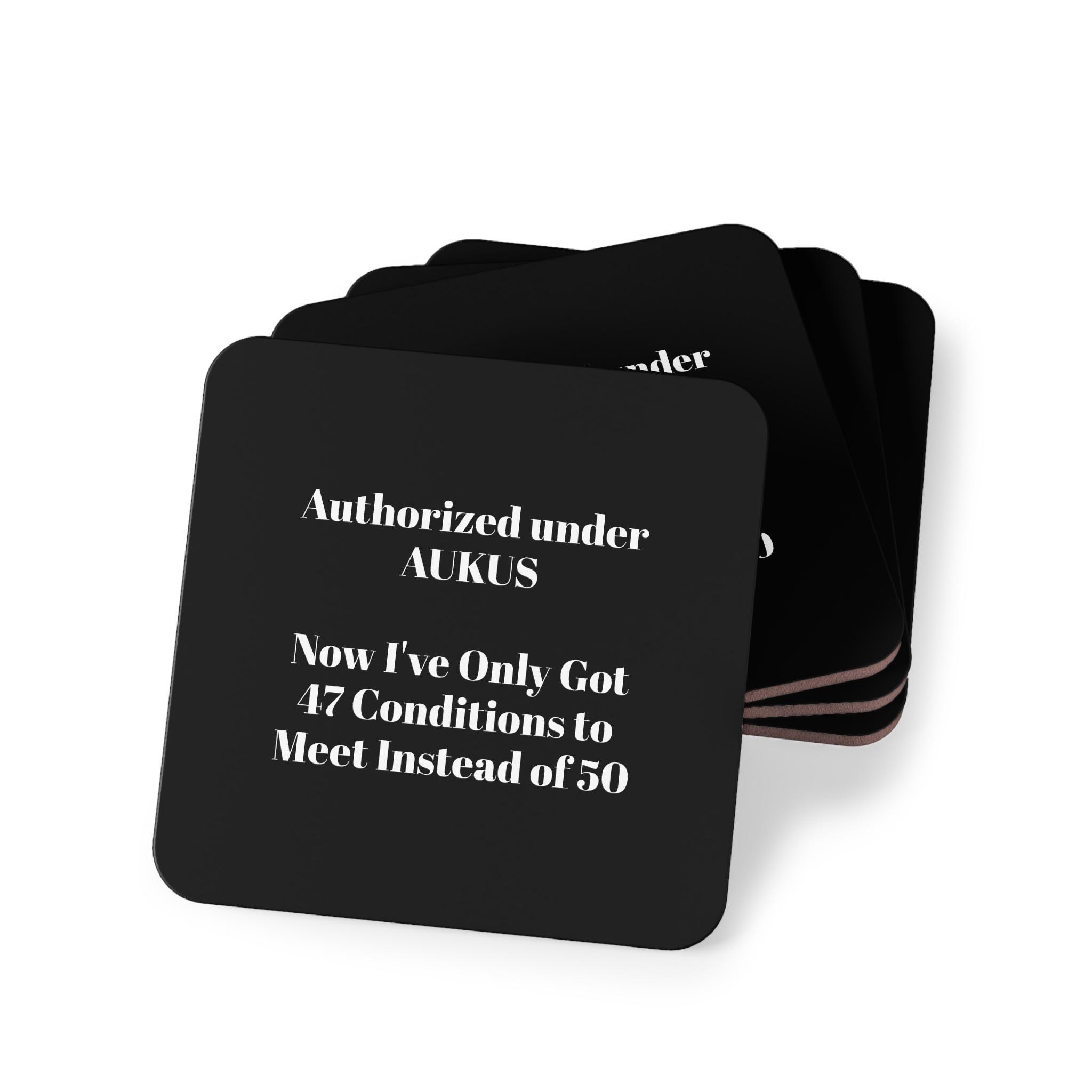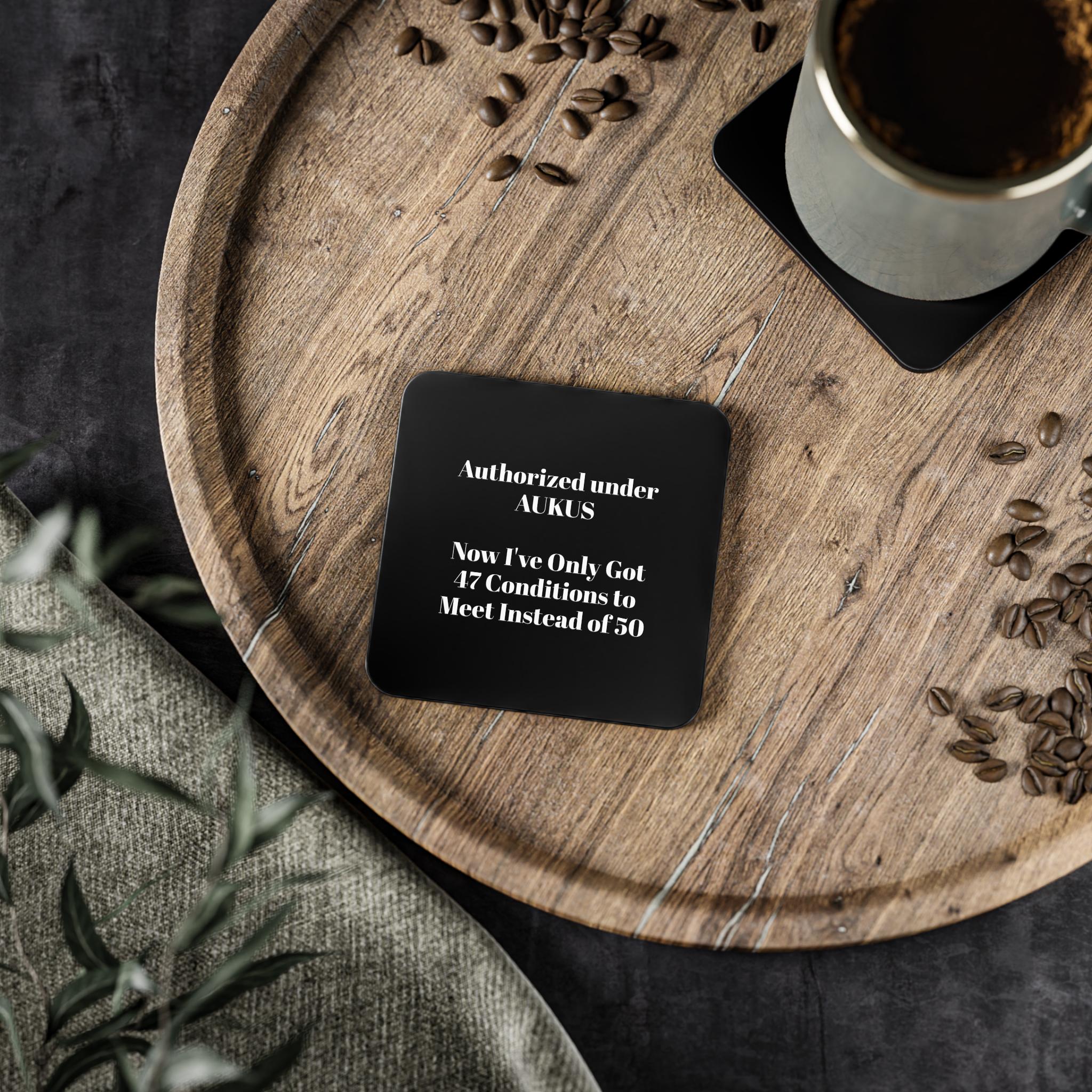A set of sleek, glossy coasters that bring quiet confidence to any desk or coffee table. The deep black surface showcases bold white typography with a crisp finish, while the cork backing protects surfaces and keeps each piece firmly in place. Compact and sturdy, these coasters sit easily under your mug during long work sessions or evening brews, adding a touch of wit and calm to routine moments. They work as singular accent pieces or gathered in a four-piece set for consistent style across a living room or office.